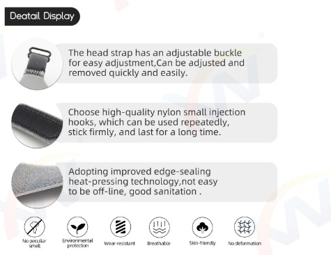 Product Features: Head strap with adjustable buckle for easy on and off.